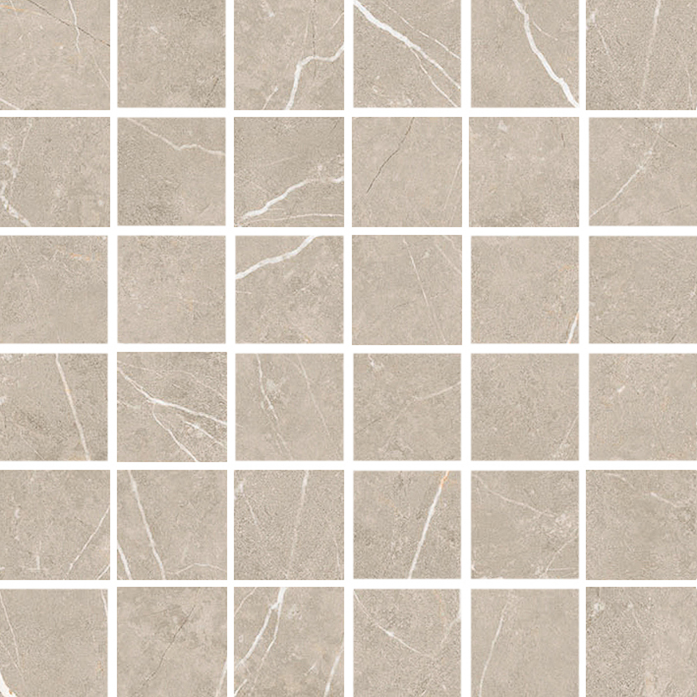 Glaciär Greige mosaik 5×5, ark 30×30 är ett golv med varm, exklusiv karaktär och behaglig ton.