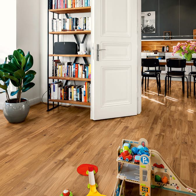 Ek Vild sorteringen ger en färgrik struktur med alla färgvariationer, ingen begränsning av kvistar med en naturoljad yta. Naturoljan lyfter fram ekens naturliga färger. Golvet har Berg & Bergs egna klicksystem Svedloc Plus. Denna fog låser samman brädorna och när de väl är låsta förblir de sammansatta. Vid flytande installation rekommenderas det att använda lim i noten vilket gör förbindningen extremt stark. Trappnosar finns som tillval. Golvet är FSC®-certifierat (C030473) och tillverkat med råvaror från ansvarsfullt skogsbruk. Detta oljade golv är NaturePlus®-certifierat (0209-0311-018-1), vilket är ett kvitto på ren och effektiv produktion, omtanke för miljö och hälsa samt användandet av enbart förnybara insatsvaror.