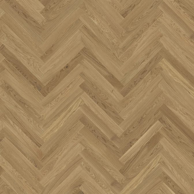 Studio Ek CD är ett parkettgolv med mattlackad ytbehandling från Kährs som läggs i fiskbensmönster. Detta mattlackade ekgolv har en större färgvariation med förekommande kvistar.