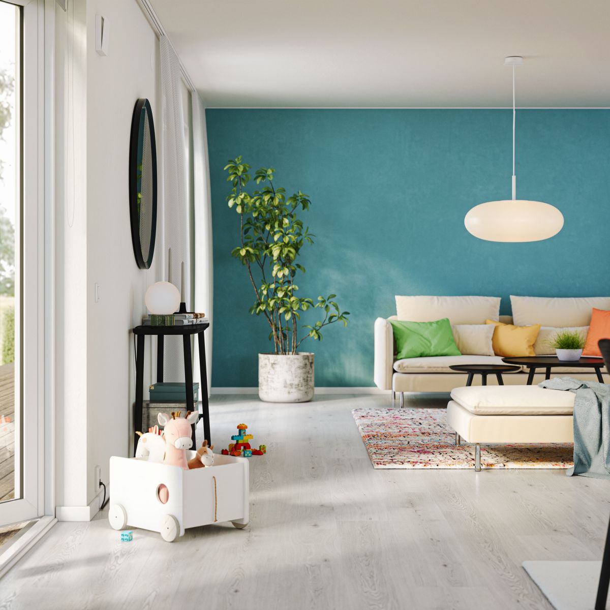 Ett modernt eller minimalistiskt hem där du vill skapa en känsla av rymd. Färgen Frosty White ger ett naturligt ljus och skapar en lugn miljö.