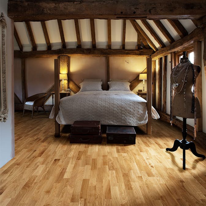 Kährs Siena Ek (lackad) är ett klassiskt 3-stavsgolv i ek med ekens naturliga färger och små