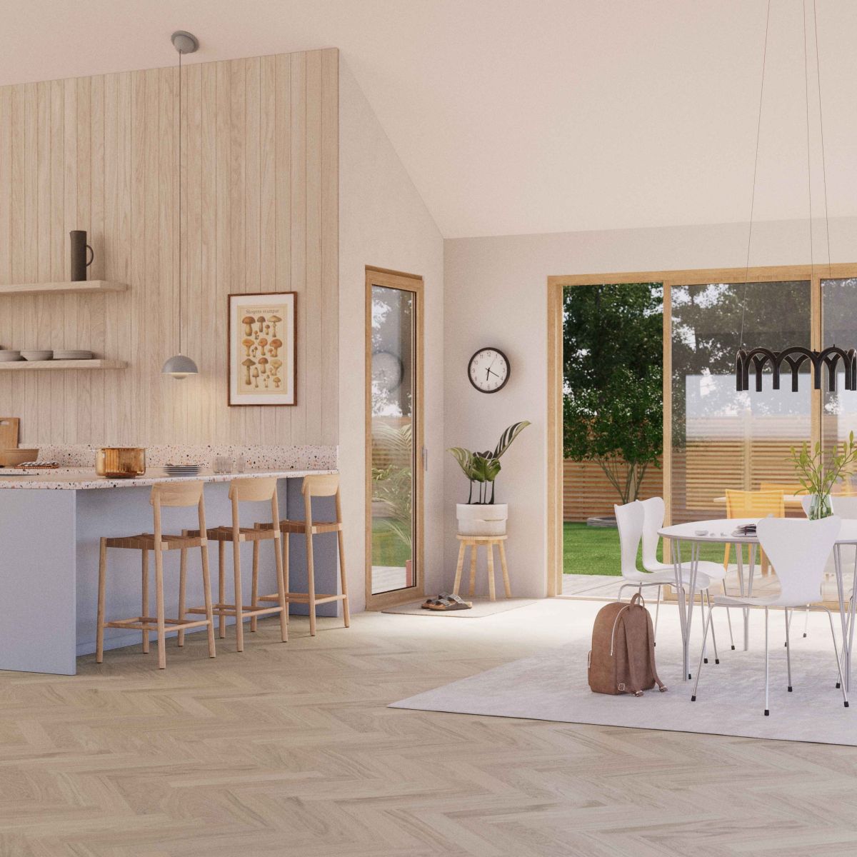 En kommersiell miljö eller ett hem där du vill att golvet spelar en framträdande roll. Det större fiskbensformatet ger ett modernt och stilfullt intryck och passar många olika inredningsstilar.