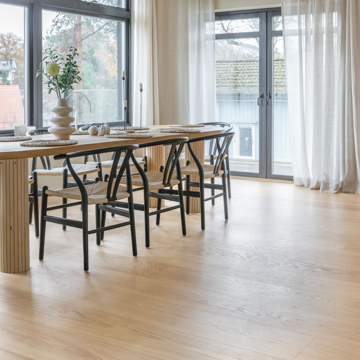 en nyans som är ett signum för skandinavisk inredning. Golvet fungerar som en perfekt ljus,